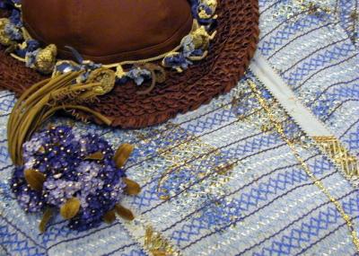 そして、たくさんのピコフリルと勿忘草のモチーフに飾られた帽子を被ります。
