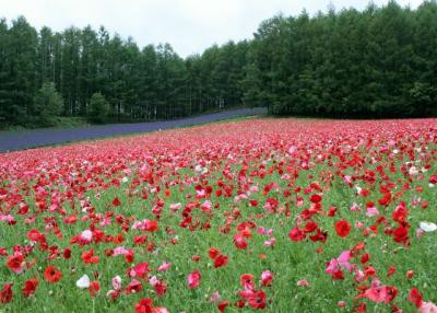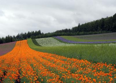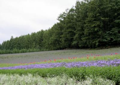 すると、突然、防風林の向こうに広がっている紫色の大地が